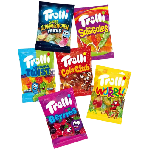 Zutaten: Glukosesirup; Zucker; Gelatine; Säuerungsmittel: Citronensäure, Milchsäure, Äpfelsäure; modifizierte Stärke; färbende Lebensmittel (Schwarze Johannisbeere, Paprika, Karotte, Rettich, Holunder, Curcuma, Saflor, Spirulina, Karamellzuckersirup); Feuchthaltemittel: Sorbit; Aromen; Säureregulatoren: Calciumcitrate, Natriummalat; Farbstoff: Echtes Karmin, Kurkumin, Brillantblau FCF; Überzugsmittel: Bienenwachs, weiß und gelb, Carnaubawachs.